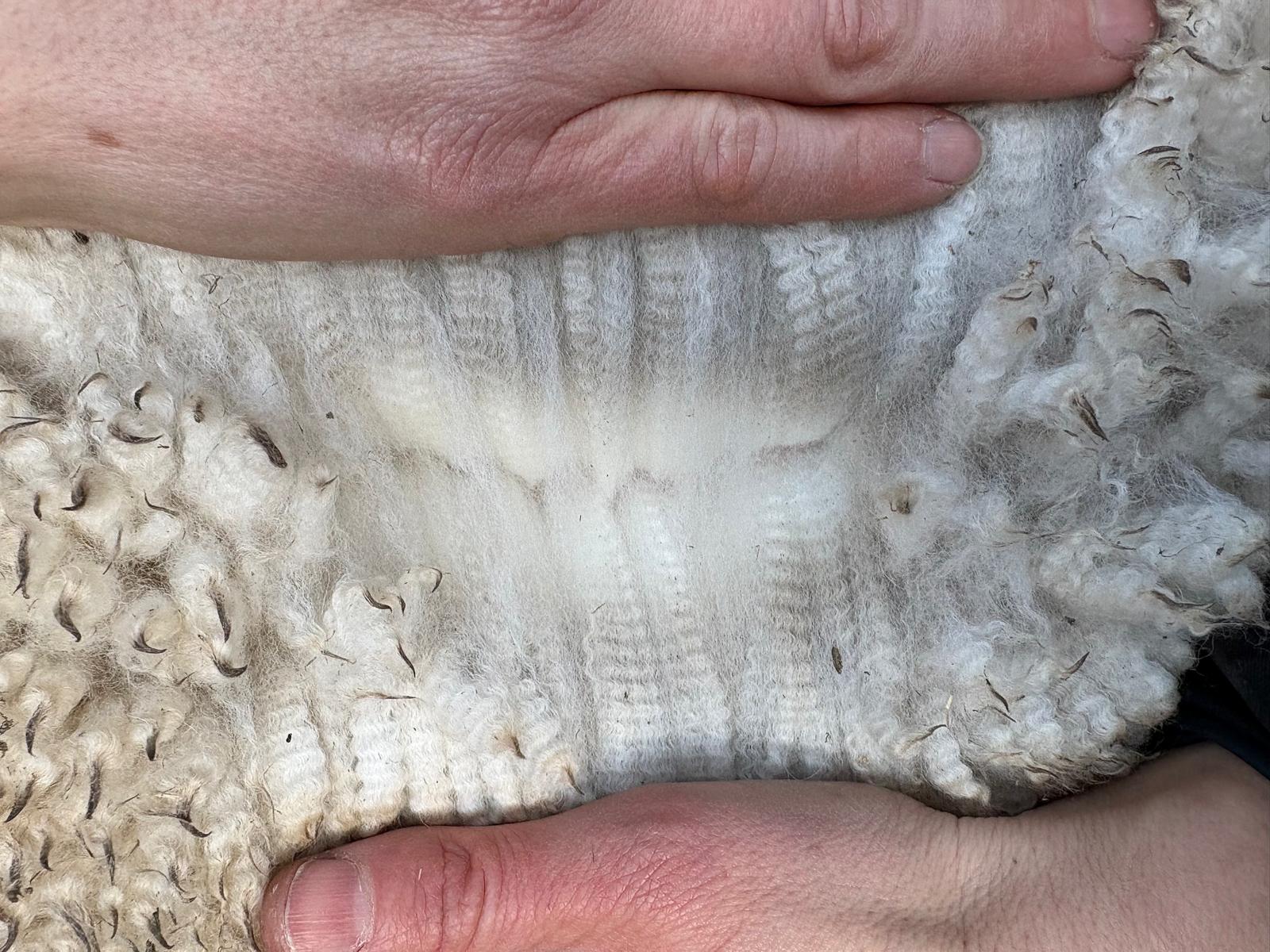 Yanina beschikt over een zeer dichte vacht met een high frequency crimpstyle. Ondanks haar leeftijd van 8 jaar behoudt ze een constante vachtkwaliteit, zonder blowouts in micron en met een lage SD. Een waardevolle eigenschap voor fokkers die op wolkwaliteit selecteren.