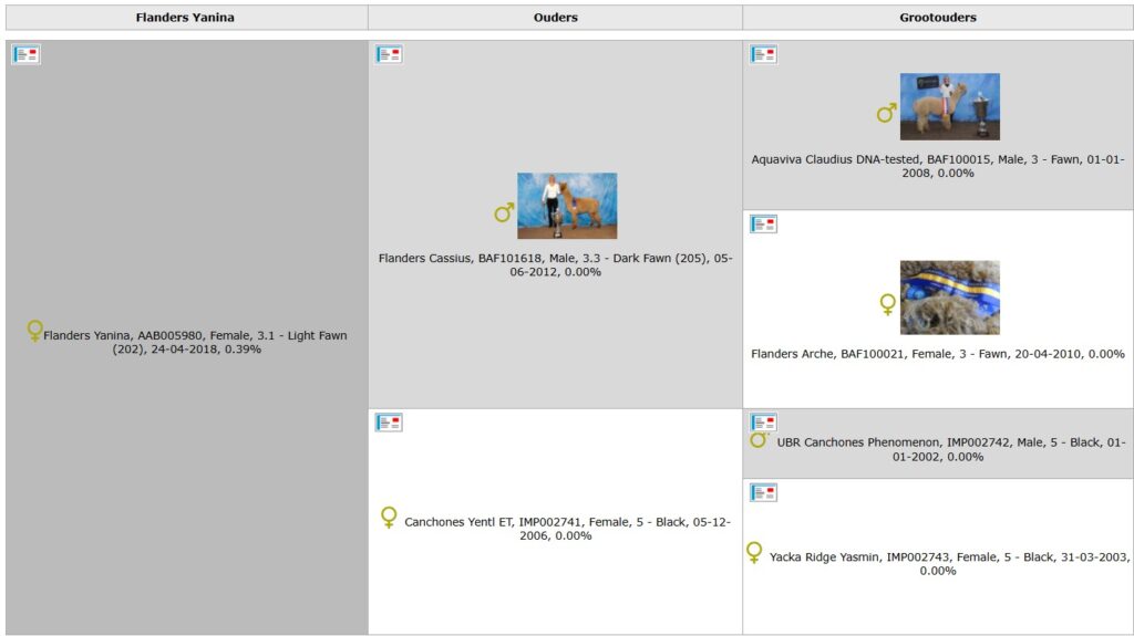 Flanders Yanina wordt aangeboden in combinatie met de verkoopovereenkomst van de Alpaca Association Benelux, inclusief garantie op een gezond en levend geboren veulen.