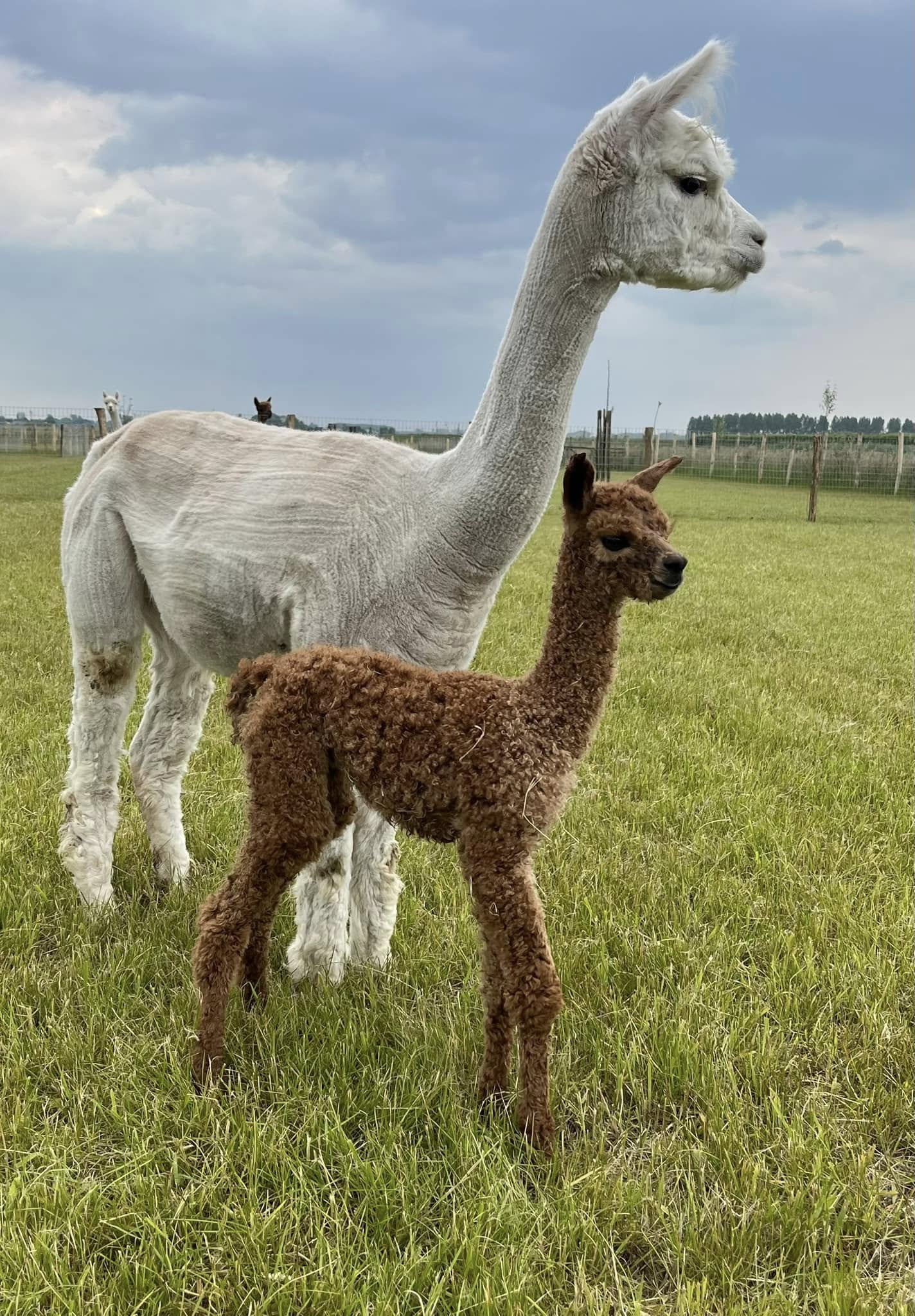 Flóki is een true-to-type alpaca met een stevig frame, een goede kop en een uitstekende bewolling. Zijn vacht is dicht en uniform, met een high-frequency crimp die van zijn nek tot aan de poten zichtbaar is. Hoewel zijn vacht niet tot de fijnste behoort, vertonen beide ouders dezelfde eigenschappen, waarbij we bij beide gezien hebben dat de microns juist stabiel blijven naarmate ze ouder worden – een waardevolle eigenschap boven een extreem fijne vacht die later kan verslechteren.